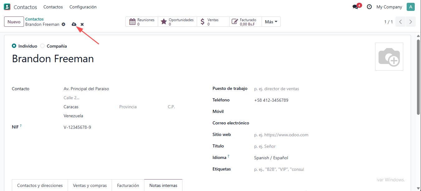 - Si es una persona que trabaja en una compañía, primero crea la "Compañía" y luego crea la "Persona" y asóciala a esa compañía en el campo "Empresa".
